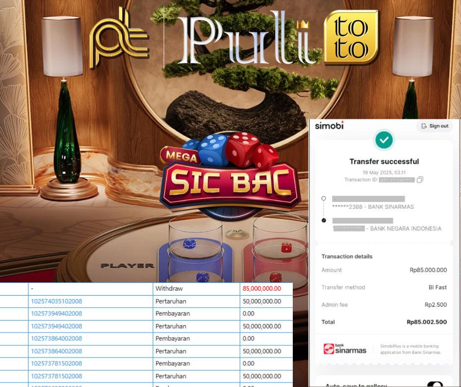 Kami ucapkan selamat yang luar biasa kepada user ID: plxxxxx atas kemenangan besar di PP LIVE β Mega Sic Bac! π₯π°
